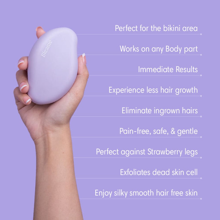 Nanokristallin polering tar bort hår smärtfritt, exfolierar för en ljusare hudton och bromsar återväxten vid regelbunden användning – återanvändbar i upp till ett år.